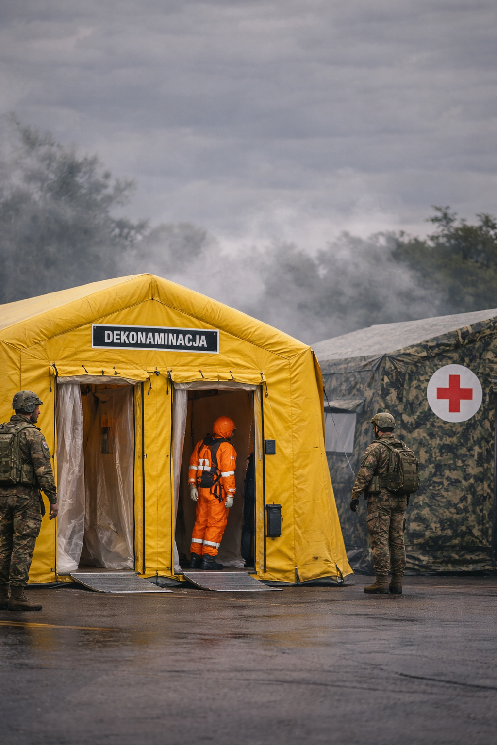 Nasze rozwiązania zostały zaprojektowane z myślą o służbach mundurowych, jednostkach wojskowych oraz instytucjach odpowiedzialnych za reagowanie kryzysowe.W naszej ofercie znajdują się m.in. namioty dekontaminacyjne, namioty medyczne, sztabowe oraz logistyczne, które doskonale sprawdzają się podczas działań ratowniczych, zabezpieczenia zdarzeń oraz operacji terenowych. Konstrukcje te umożliwiają szybkie rozstawienie i są przystosowane do pracy w trudnych warunkach atmosferycznych.