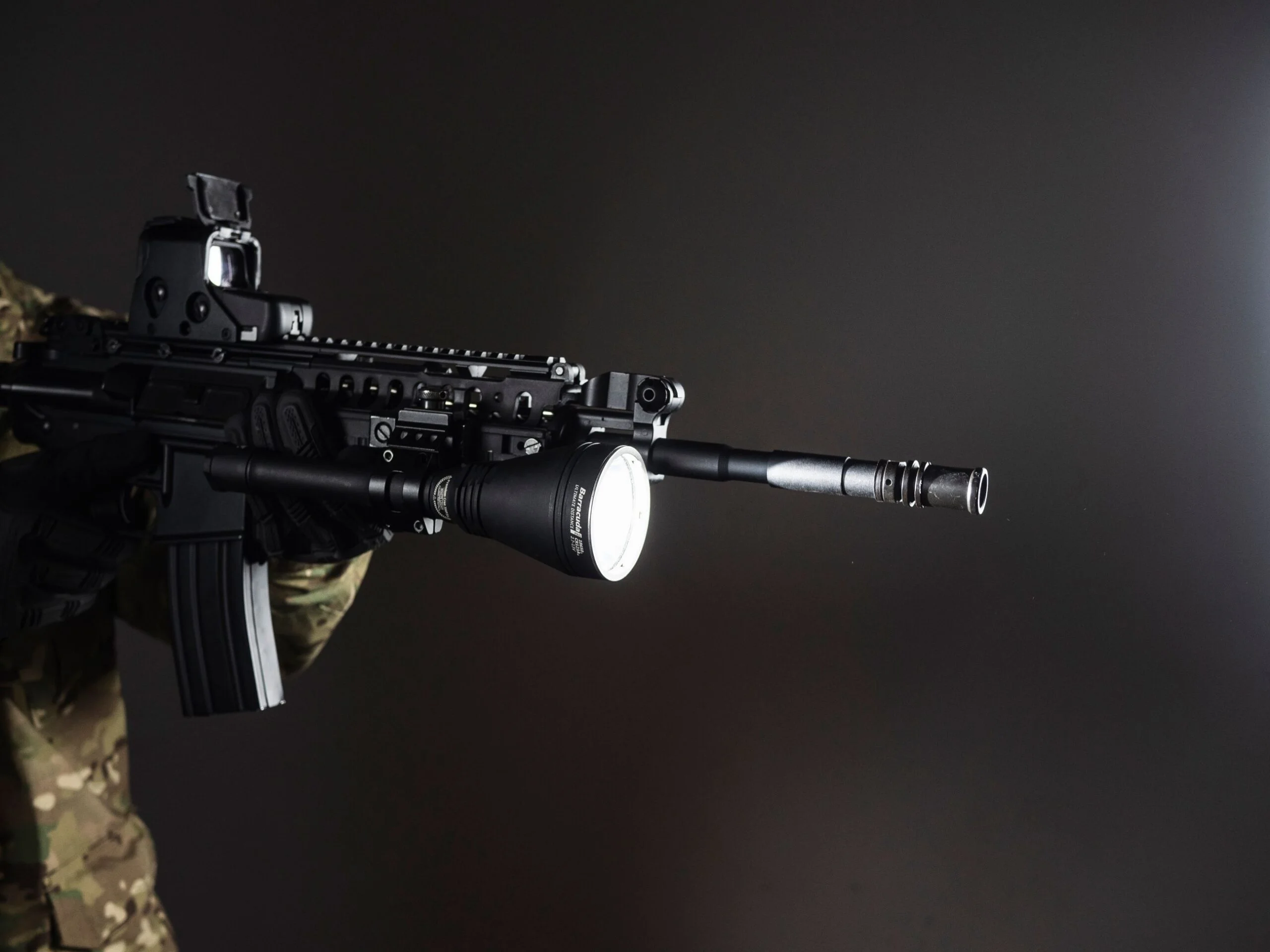 LATARKA SZPERACZ BARRACUDA PRO to duży, głęboki reflektor dla maksymalnego zasięgu, dłuższy czas pracy, praktyczna walizka z tworzywa sztucznego. Model zasilany dwoma akumulatorami 18650 Li-Ion. Rekordowe1 rok i 5 miesięcy w trybie Świetlik na jednym ładowaniu akumulatorów. Ekstremalny zasięg światła i maksymalna niezawodność. Dostępne z białym lub ciepłym światłem. Wytrzymuje odrzut broni każdego kalibru dzięki umieszczeniu sterownika we wzmocnionej kapsule z masą ochronną. Kompatybilność z akcesoriami taktycznymi.