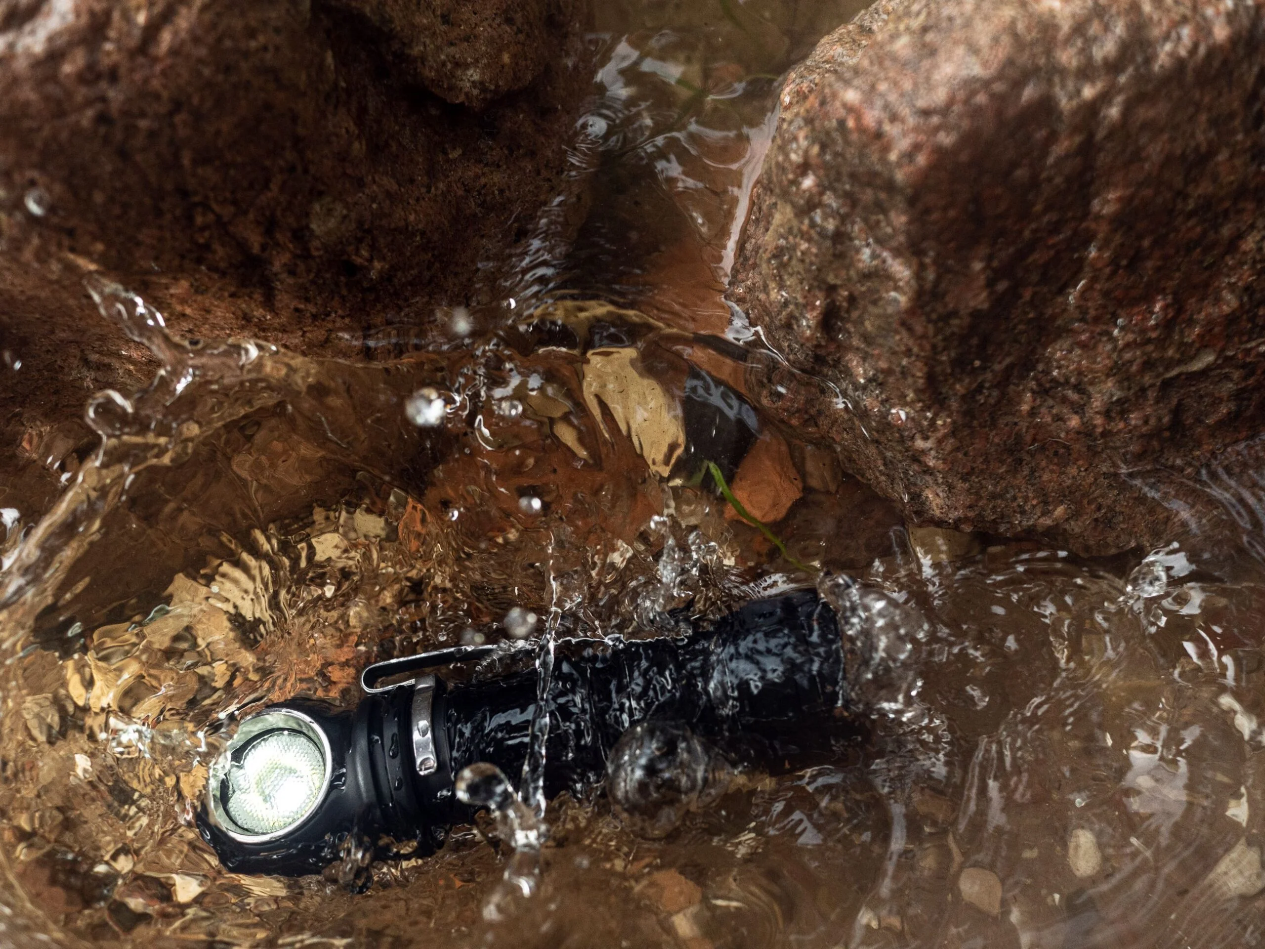 - Pełna ochrona przed wodą, brudem i kurzem zgodnie ze standardem IP68 — latarka nadal działa nawet po zanurzeniu na głębokość 10 metrów. Wytrzymuje upadki z wysokości do 10 metrów.