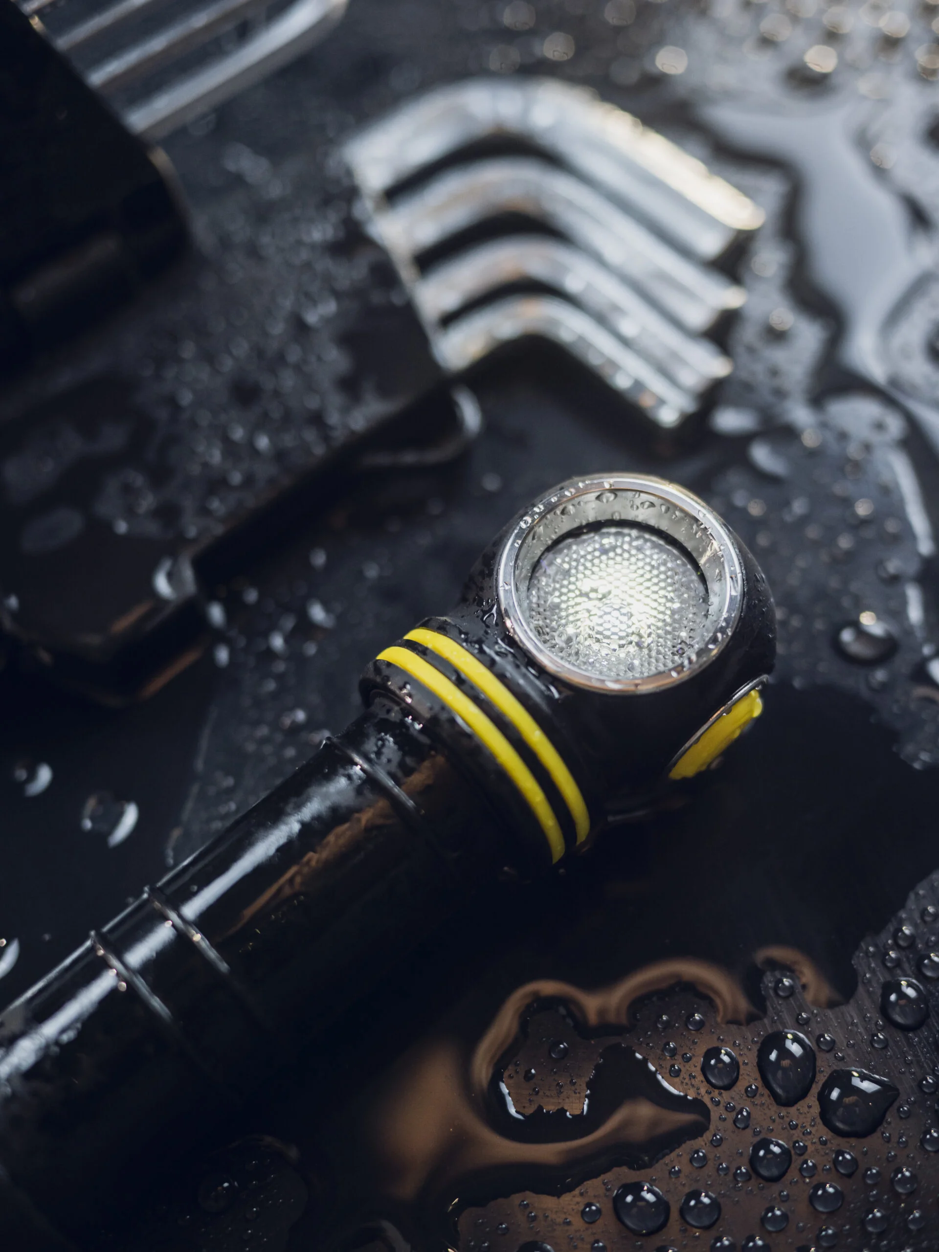 - Pełna ochrona przed wodą, brudem i kurzem zgodnie ze standardem IP68 — latarka nadal działa nawet po zanurzeniu na głębokość 10 metrów. Wytrzymuje upadki z wysokości do 10 metrów.
