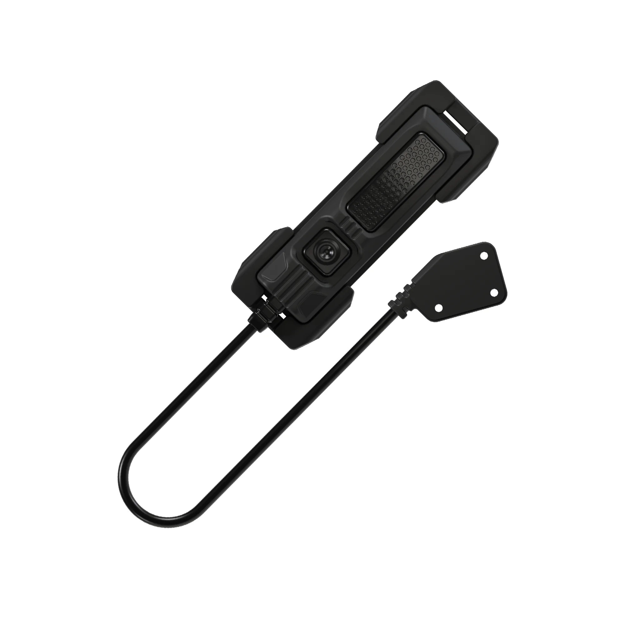 Wygodna obsługa jednym palcem — duży przycisk ułatwiający naciśnięcie nawet w rękawicach taktycznych, przełącznik dźwigniowy umożliwiająca przełączanie pomiędzy trybami stałej jasności światła oraz aktywująca zabezpieczenie przed przypadkowym uruchomieniem.