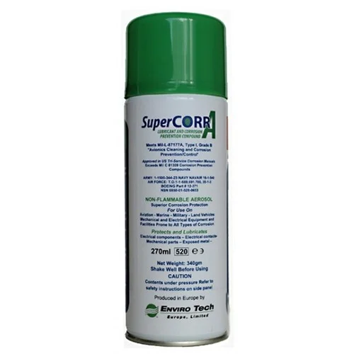 Super Corr-A jest specjalnym środkiem zapobiegającym korozji, bez siarczanów, chlorków lub halogenów, który nie jest doskonały w zapobieganiu uszkodzeniom i zanieczyszczeniom wszystkich powierzchni sprzętu elektronicznego i komponentów mechanicznych o ograniczonej tolerancji.