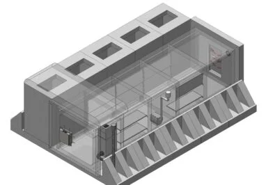 chronione przez UHPFRC i zawory ciśnieniowe. Podstawowe wyposażenie obejmuje system wentylacji, ogrzewanie, wzmocnione